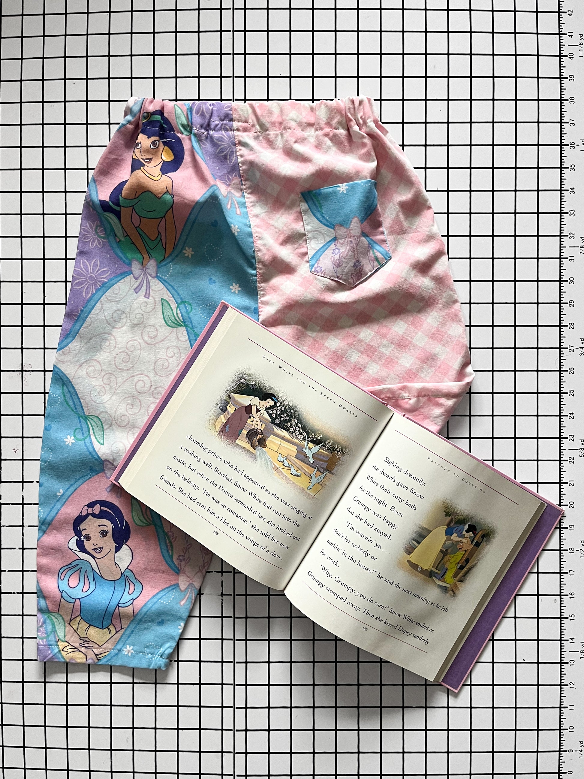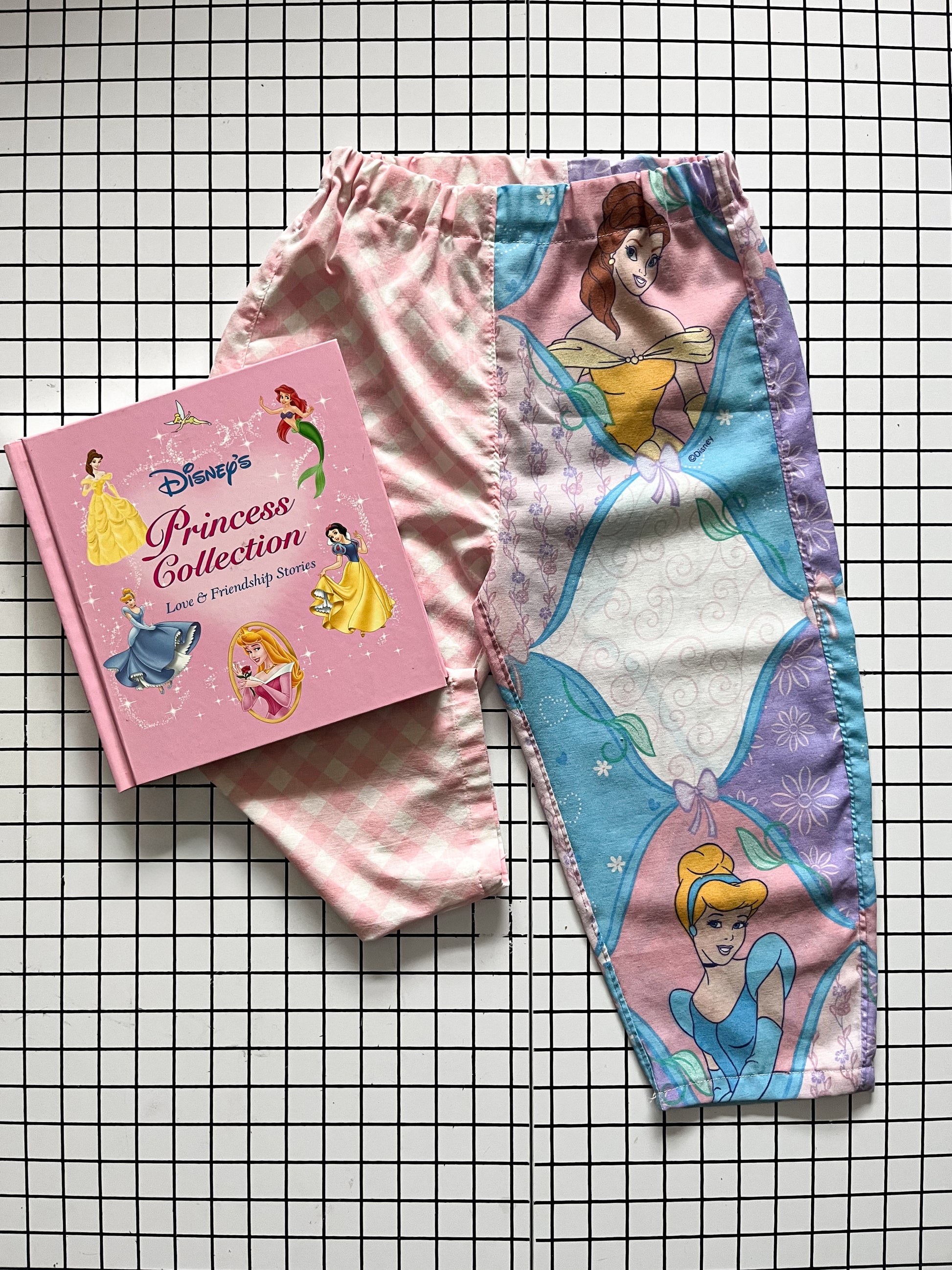 This Disney Princess storybook gift set includes a previously loved Disney princess collection book and a handmade princess Neverland pant in size 4/5