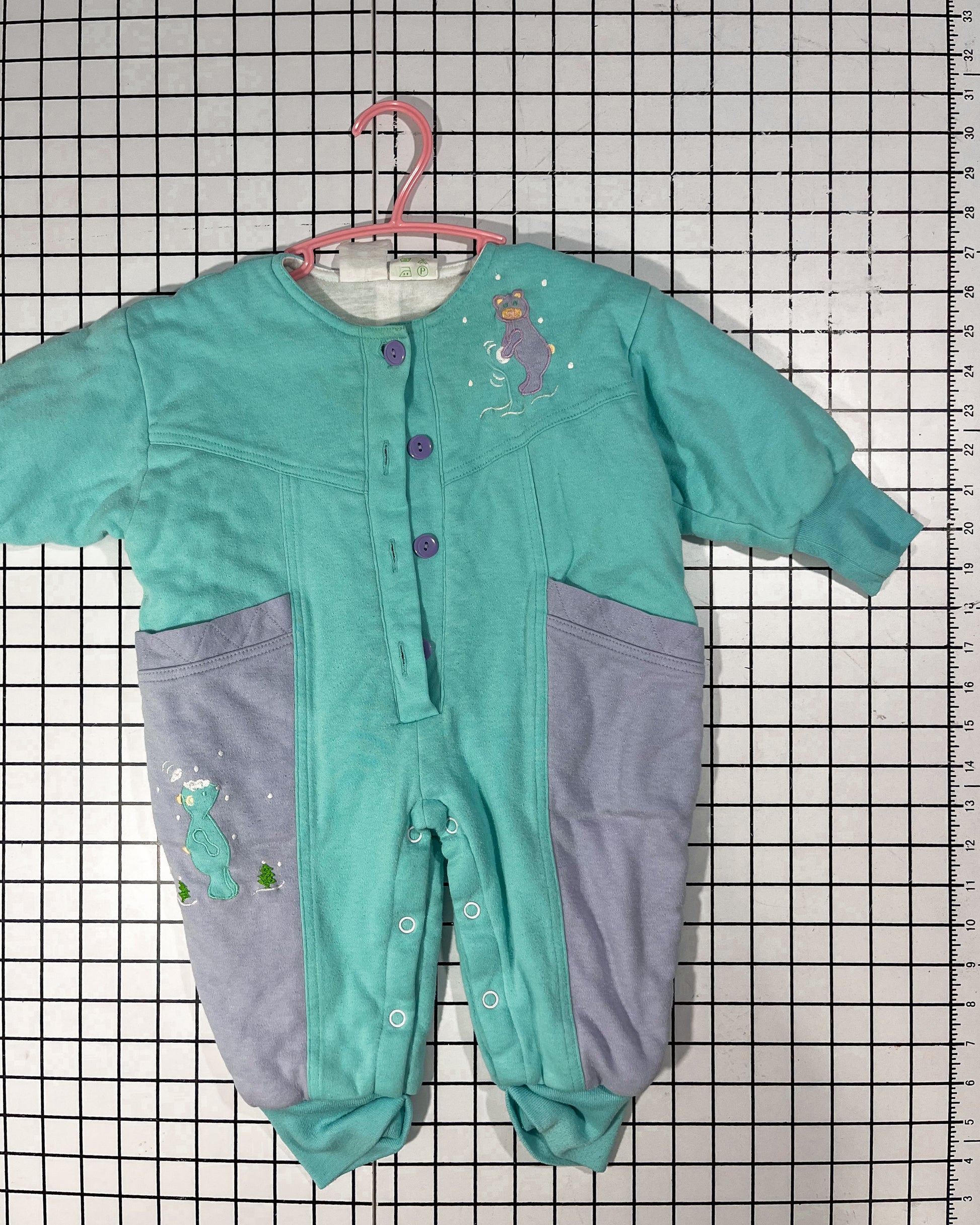 Vintage Teal and Lilac Padded Bunting Sleeper - approx size 6mos